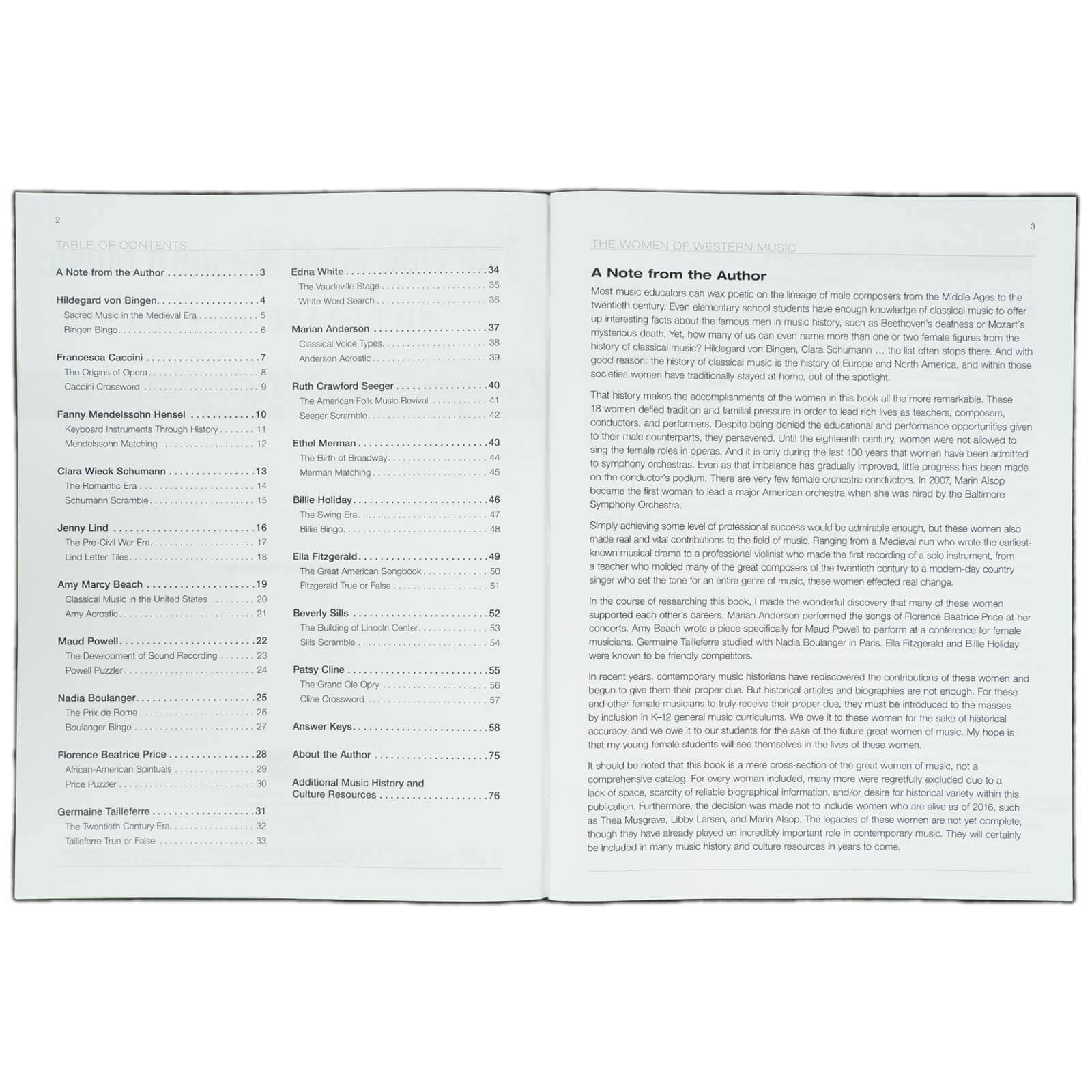 Balance your music history curriculum with this indispensable classroom resource! This long-awaited teaching manual focuses exclusively on the female artists who haven't made it into most textbooks. Biographies, student assessments, and recordings are included for 18 important women who enriched the world with their incredible talents -- such as Clara Schumann, Amy Beach, Marian Anderson, Ethel Merman, and Billie Holiday. Recommended for grades four and up. Book is 100% reproducible. Suitable for remote teaching/distance learning.