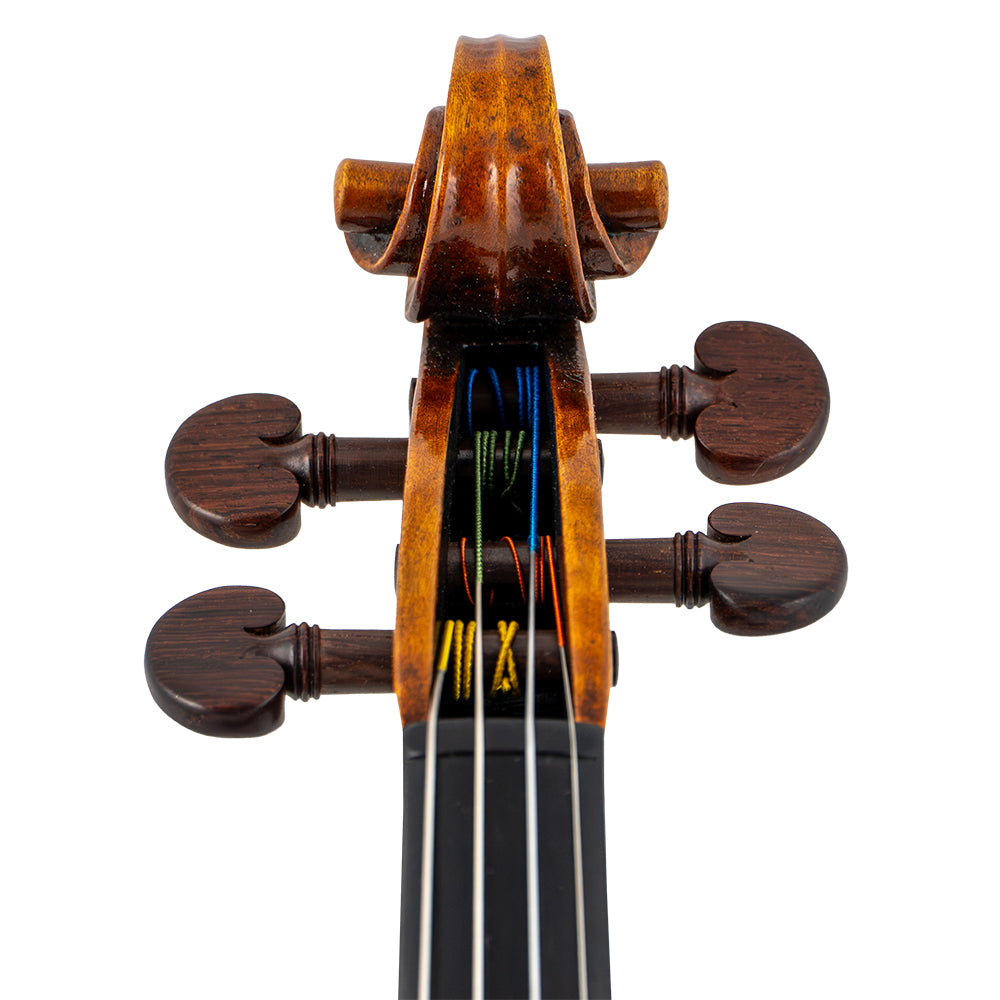 Patterned after the Lord Wilton Giuseppe Guarneri “del Gesu” of 1742, this fine violin was meticulously crafted by violin-maker Theodore Skreko. The attention to detail is remarkable with painstakingly detailed antiquing; this violin will be difficult for the player to put down. The appearance is complimented by rich overtones and a warm full-bodied sound.