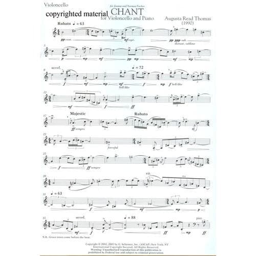 Thomas, Augusta Read - Chant for Cello and Piano Published by G Schirmer