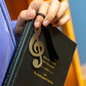 A cute gift for that musical bookworm in your life. This metal bookmark comes with a stylish, black tassel.