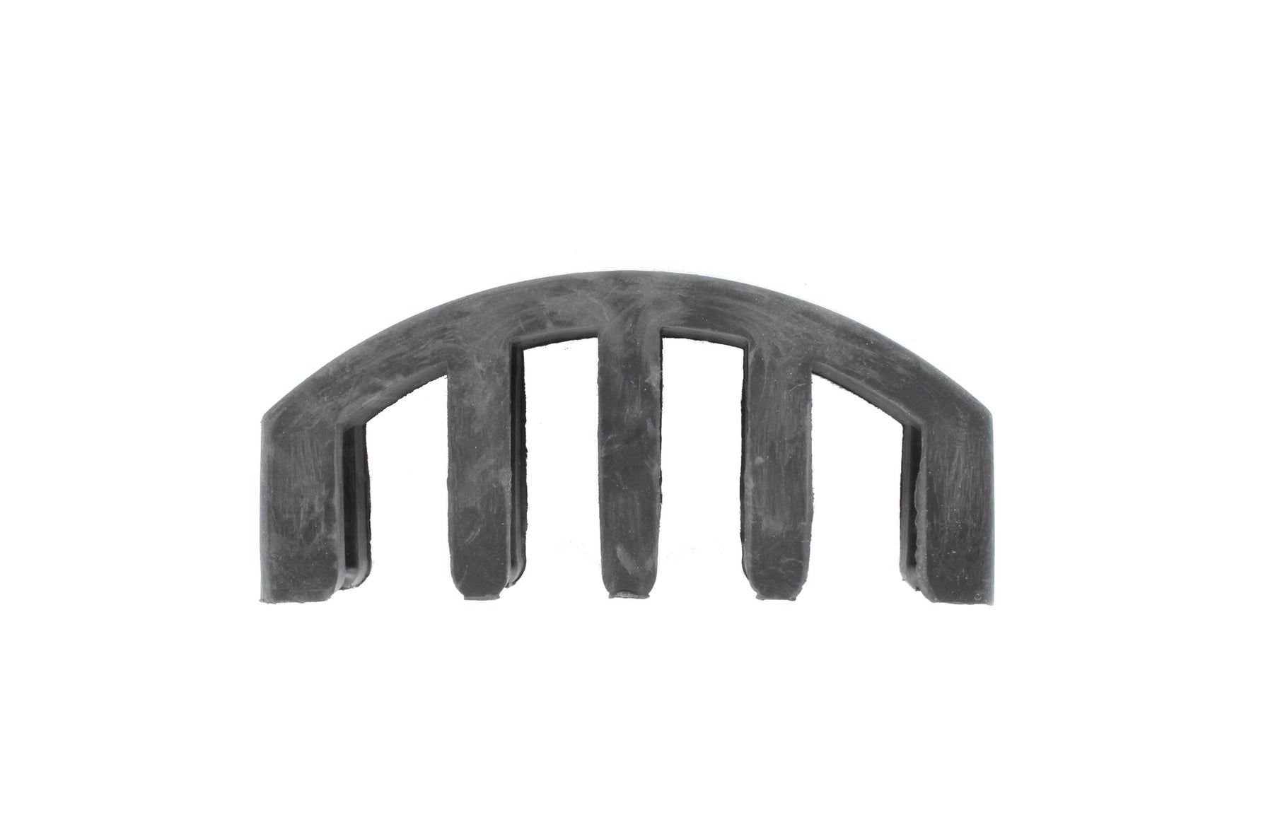 Medium-strong muting effect. Made of firm rubber material that provides a bit less clear tone than metal mutes, but the rubber has less risk to the instrument if the mute should fall off accidentally. Grips entire bridge.