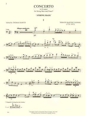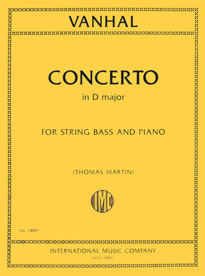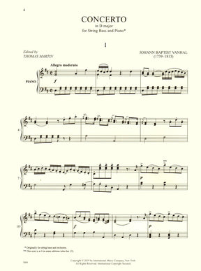 Vanhal, Johann Baptist - Concerto In D Major - for Bass and Piano - edited by Thomas Martin - International Music Company