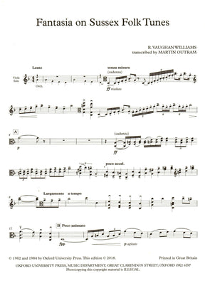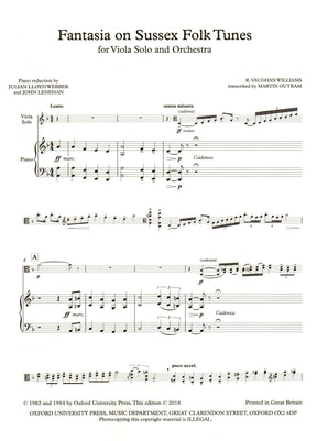 Fantasia on Sussex Folk Tunes for Violoncello and Orchestra was first performed by Pablo Casals, to whom it was dedicated, on March 13th, 1930 at a Royal Philharmonic Society Concert. This Transcription for viola by Martin Outram is compatible with the original orchestration; full score and parts are available on hire from Oxford University Press.