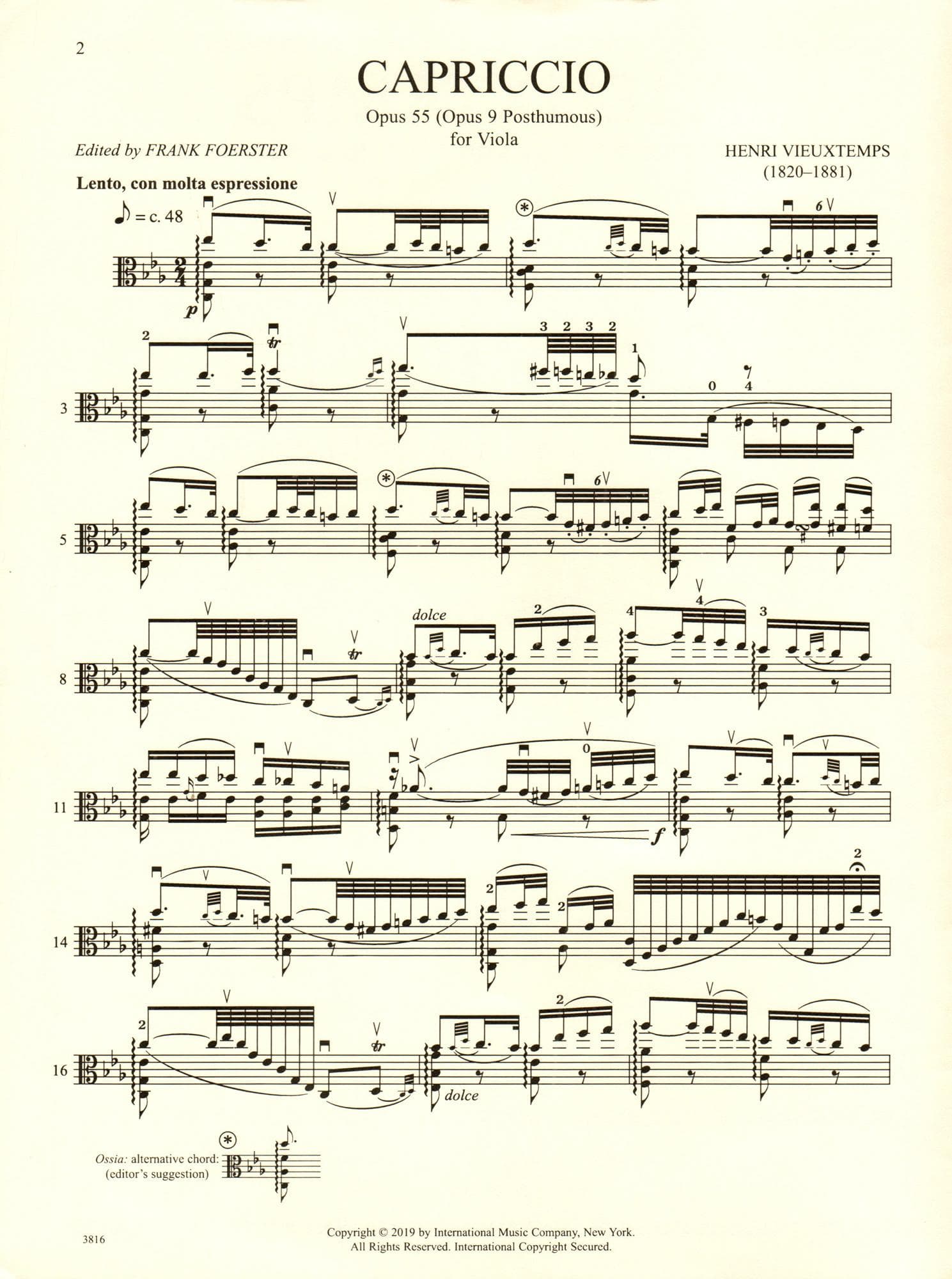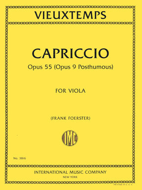 Vieuxtemps, Henri - Capriccio, Op. 9 (Posthumous) - for Solo Viola - edited by Frank Foerster - International