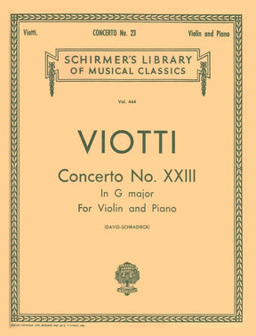 Viotti, GB - Violin Concerto No 23 in G Major - Violin and Piano - edited by David/Schradieck - Schirmer