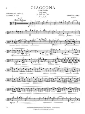 Vitali - Chaconne in g For Viola & Piano Published by International Music Company