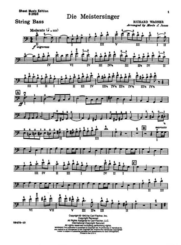 Wagner - The Meistersinger For Bass and Piano Arranged by Isaac Published by Carl Fischer