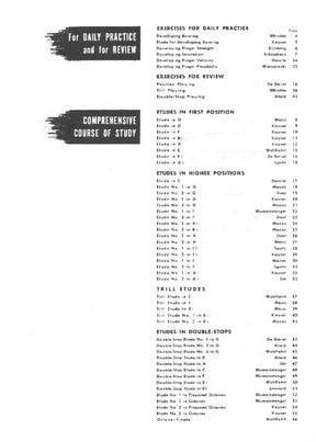 Preparing for Kreutzer, Volume 1 is a collection of intermediate-level etudes by Kayser, Dont, Mazas, etc., compiled by Harvey Whistler. The studies are broken down into four main sections: etudes in first position, etudes in higher positions, trill etudes, and etudes in double-stops. Each section has some short, supplementary exercises attached; for instance, before beginning the section on trilling, there is a brief trill review of what the player is assumed to know already. There are also several warm-up” exercises intended for daily practice, addressing agility development and bowing technique.