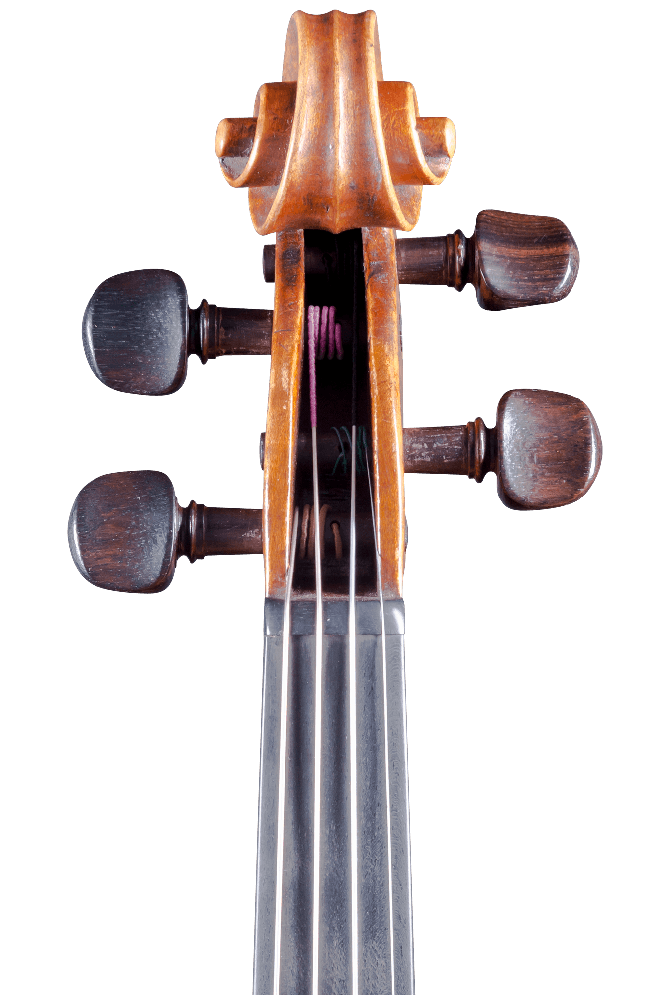 For the violinist seeking to blend artfully with partners in a quartet, this 19th century violin by William Booth is well worth considering. With excellent tonal and color balance, this instrument is also versatile across the repertoire. The back is of one piece of maple with faint flaming. The top is of straight narrow-grained spruce. The golden-brown varnish is applied over a golden ground.