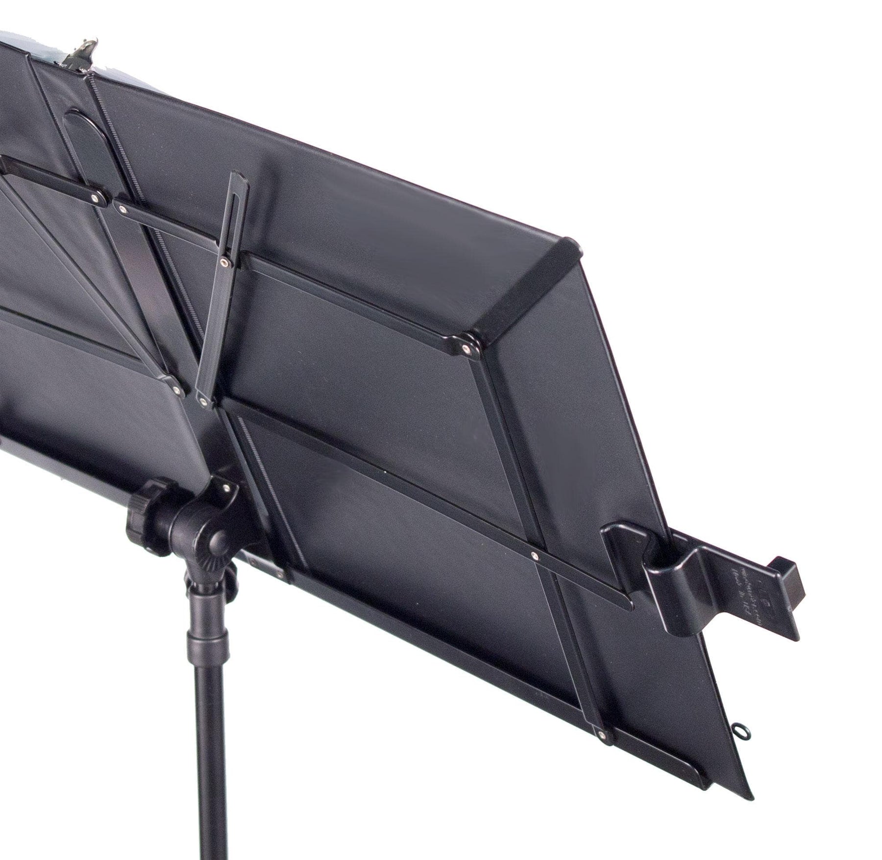 The Wind Wynder solves all of these issues and with the versatility that makes it useful on any music stand, for every situation. Whether you play outdoor gigs and concerts, practice in front of a fan, or just want to always make sure your sheet music stays open to the page you are playing, you will not find a more effective solution than the Wind Wynder. Two incredibly tough and rugged clips will fit on every metal or plastic stand we sell, including Peak, Manhasset, Hamilton, Nilton, and more. Pulling out of the right clip, a smooth yet strong monofilament cord invisibly holds down your sheet music with just enough tension, still allowing you to quickly turn pages or jump between selections! The clips even attach to binders and heavier orchestra folders if you are using a wire stand or thick wooden stand. Reaching a full 42 inches, the Wind Wynder is even useful for conductor podiums, extra wide music stands, and the Manhasset Stand-Outs. The monofilament winds itself back up when you are done and fits in the included travel pouch, taking up less space in your case than many other types of sheet music holders. Its small size and black finish make it unnoticeable to the audience or in photographs, maintaining your professional appearance! 1.7 ounces. Made in the USA.