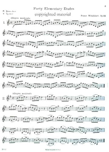Wohlfahrt's 40 Elementary Studies, Op. 54, focus on the basics of violin-playing, like finger patterns, intonation, tone, and bow distribution. In addition, these first-position exercises are intended to develop different basic bow strokes, like staccato and martele; and develop speed and agility in the left hand.