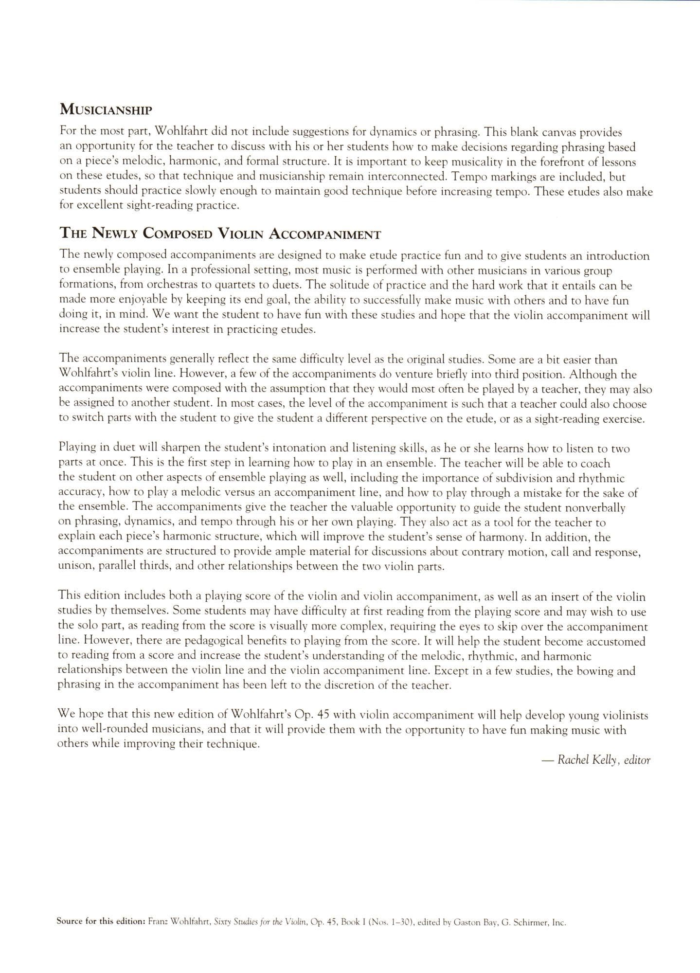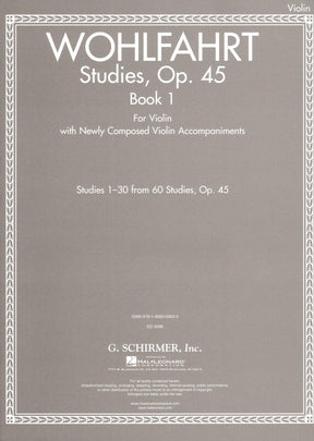 Wohlfahrt, Franz - Op. 45, Book 1, Studies 1-30 of 60 - for Violin - with Violin Accompaniments by Rachel Kelly - Schirmer