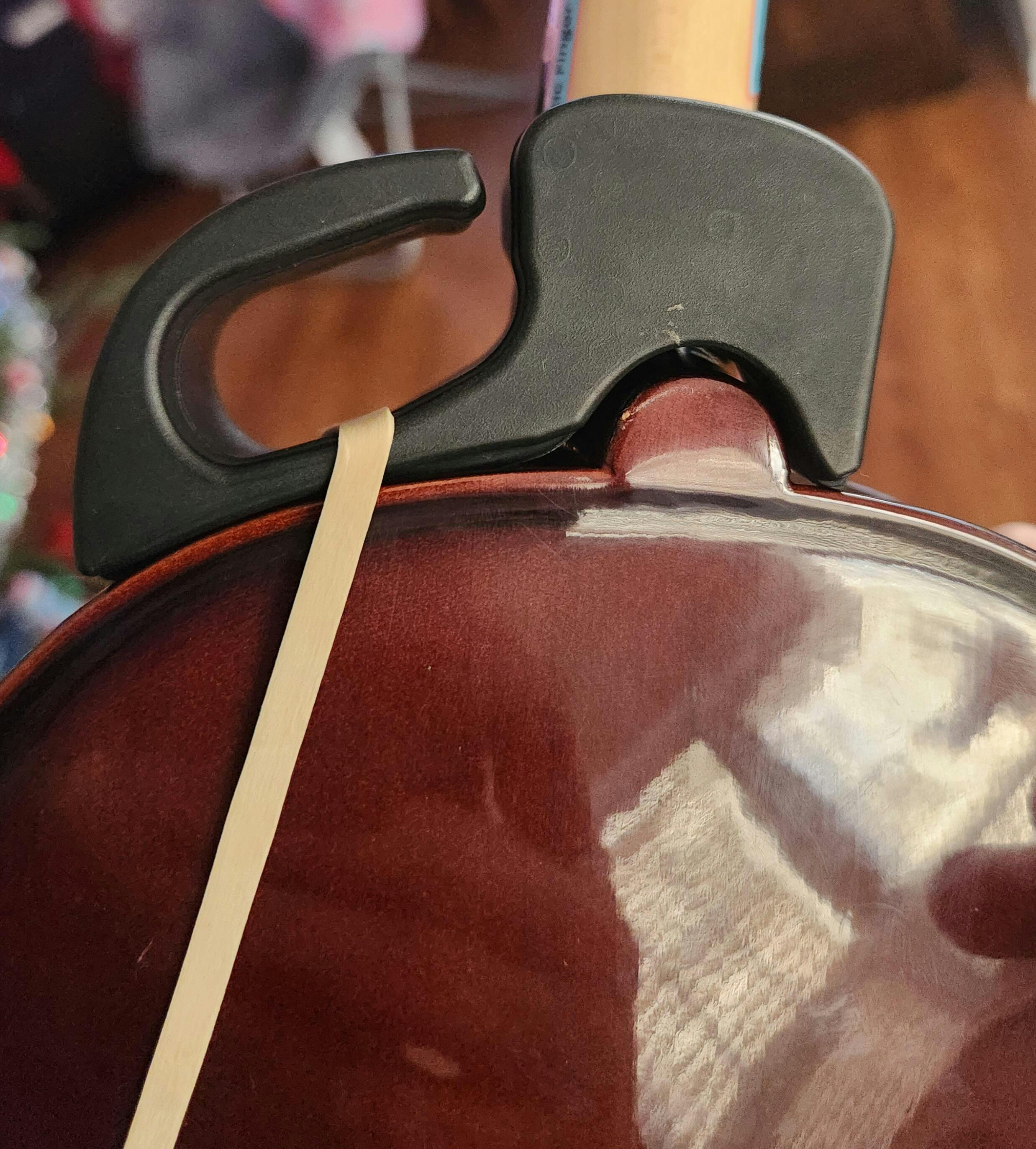 It attaches as easily to the violin as a shoulder rest, using a simple elastic band, and it's new and improved smooth finish is gentle on both the player and the instrument. The Wrist Rascal gently trains the left wrist to stay in the proper position by mimicking the feel of the hand against the heel, as in third position, where a collapsed wrist is impossible. After just a few weeks' use, muscle memory takes hold, and the left hand is trained. And it double as the most effective support for training of vibrato. The large size is for 4/4 violin or 14" to 16" violas, the medium size for 1/2 to 3/4 size violins or 12" - 13" violas, and the small for 1/4 size or smaller violins.