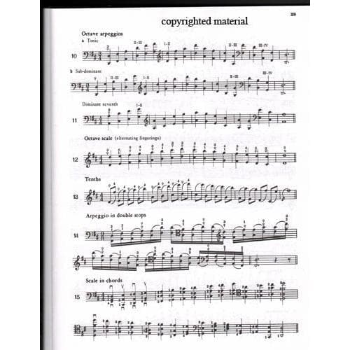 This method book offers 3 and 4 octave scale and arpeggio exercises in a vast variety of rhythems and forms -- progressing in difficulty from straight scales and broken thirds to scales and arpeggios in double stops, octaves, tenths, and harmonics (and covering everything in between).  The book will offer value to developing cellists for a very long time while somehow managing to stay fresh and interesting.