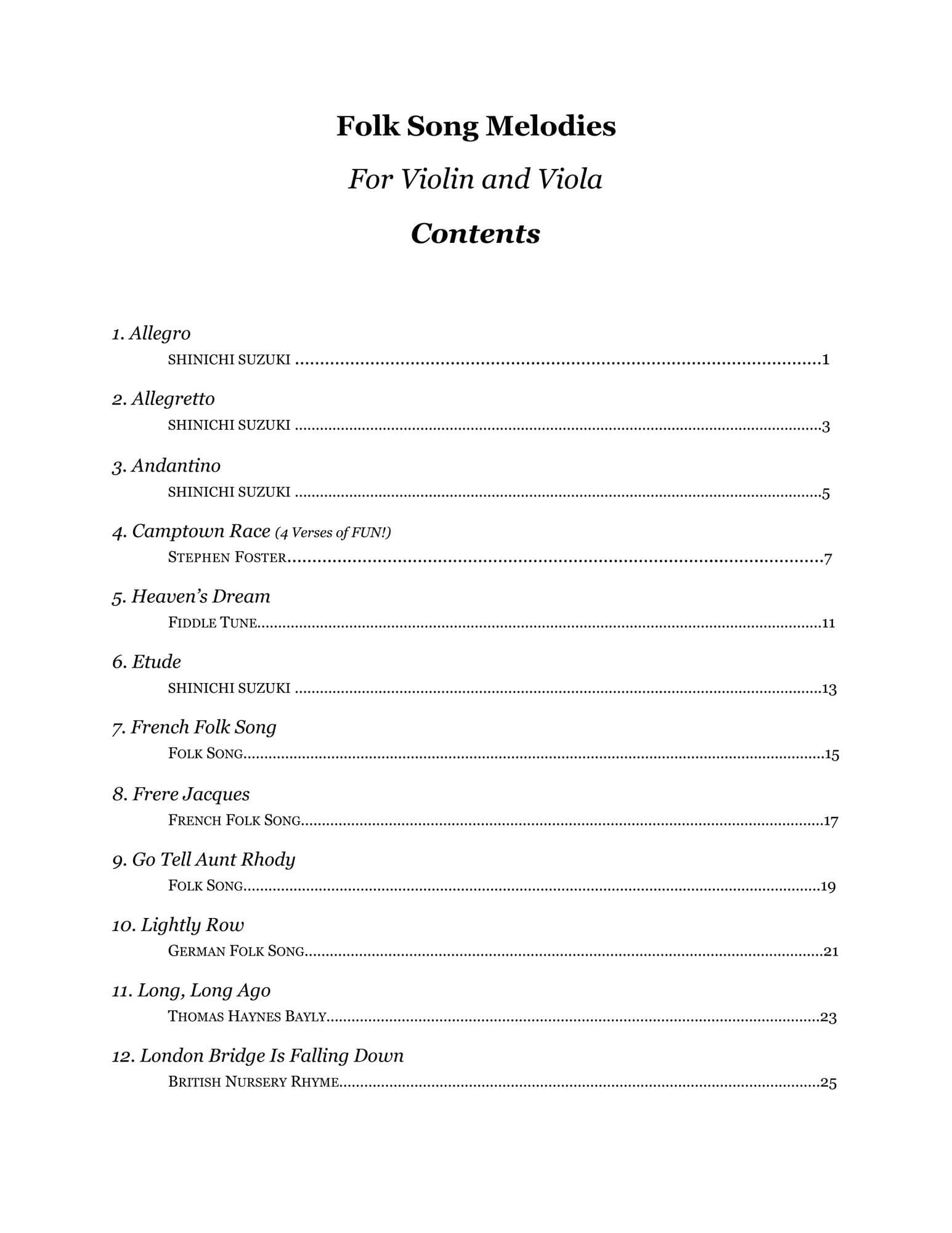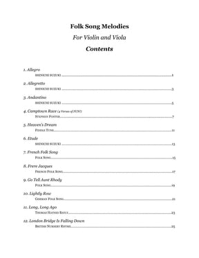 Check out the other Folk Song Melody books with the same titles: Folk Song Melodies for (1) Violin Ensemble (2) Viola Ensemble and (3) Viola (Melody) and Violin (Harmony).