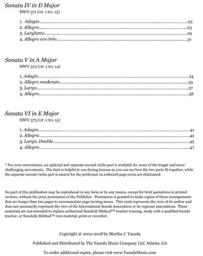 NOTE: Bowings and slurs in certain top melody lines are omitted in order to adhere to copyright law. Please feel free to add your own markings. This second edition reflects copyright requirements of smaller font sizes and gray shading in melody lines as specified by the International Suzuki Association.