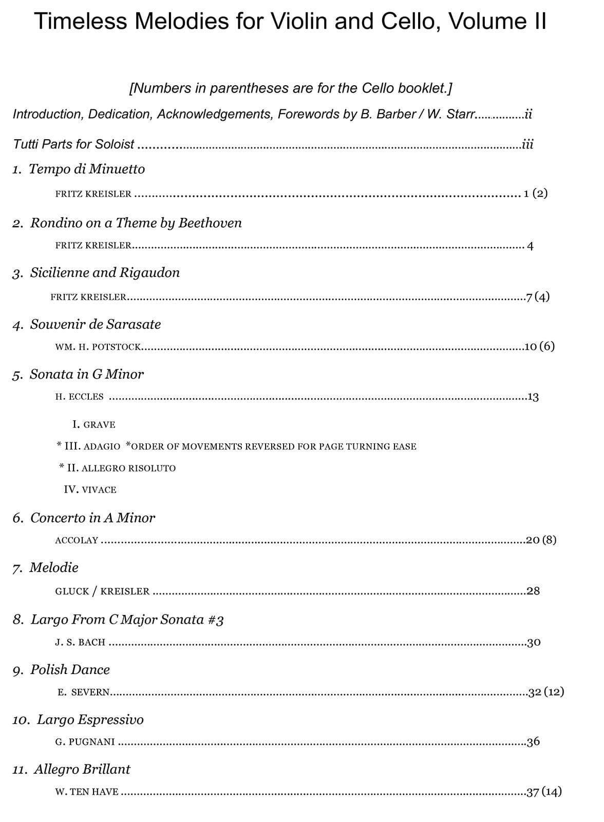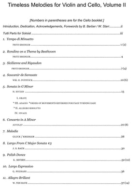 Timeless Melodies For Violin and Cello, Volume II is a transcription of the same titles for Two Violins. This book truly meets a need for more violin and cello duets from the standard classical repertoire. It includes many of the top favorite selections from Barbara Barber's Solos for Young Violinists (volumes III-V), along with a couple of Suzuki favorites. Complete with a Foreword from Barbara Barber herself!