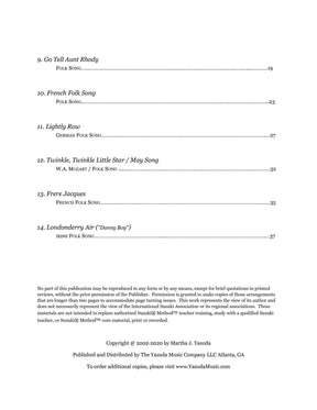 Combines some Barbara Barber top favorites from her series, Solos for Young Violinists, along with several Suzuki favorites. These volumes include glowing Forewords from Barbara Barber, herself, and Suzuki pioneer, William Starr! This is not technically a Susuki-licensed book since all pieces are in the public domain. However, many violinists/violists like to add this into their BUNDLE because of the superb content!