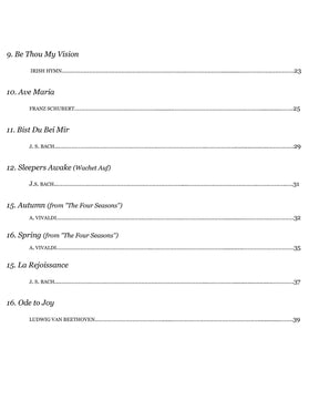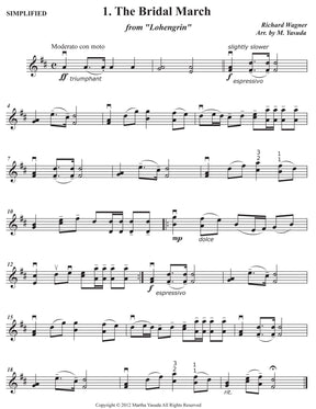 Martha's "go-to" book for Solo Violin wedding gigs! Includes sixteen well-crafted and elegantly satisfying double stop solo arrangements. This book is extremely unique in that it includes BOTH a Simplified and Advanced version of each arrangement within the same book.