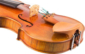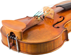 Boxwood violin chinrest with a high, pointed, center-mounted plate. Perfect for a player who prefers something in between a true center-mounted and side-mounted chinrest.